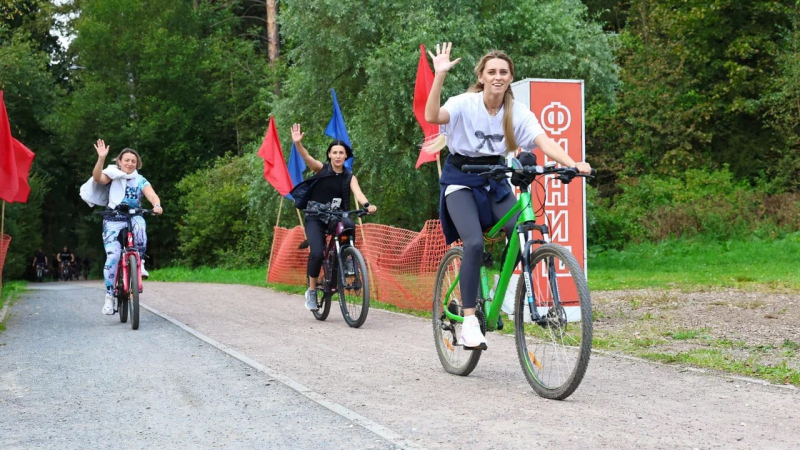 Около 150 любителей здорового образа жизни и велоспорта собрались для участия в велосипедной прогулке по дорожкам Мытищинского лесопарка. Это мероприятие было приурочено к 100-летнему юбилею Мытищ.