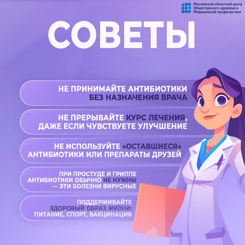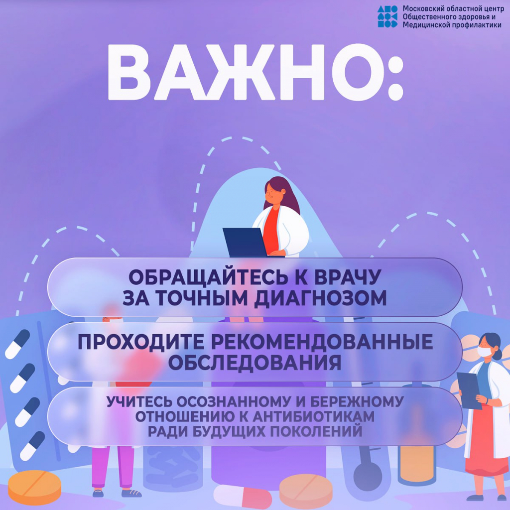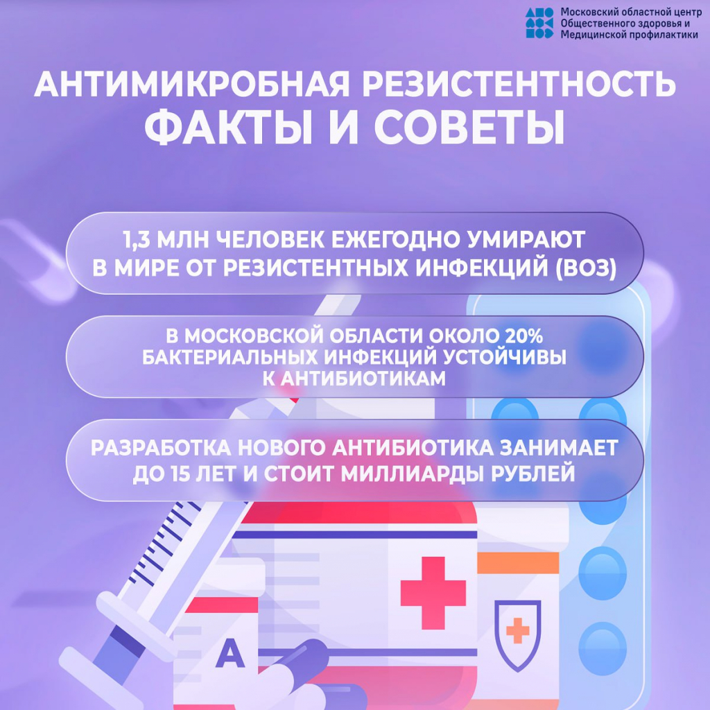 Врачи Мытищинской больницы присоединяются к мероприятиям Неделя борьбы с антимикробной резистентностью, которую Минздрав России проводит с 17 по 23 ноября 2025 года рамках национального проекта «Продолжительная и активная жизнь». Формирование устойчивости бактерий к антибиотикам — серьёзная глобальная проблема, которая лишает эффективности противомикробные препараты. Для того, чтобы объединить усилия специалистов и общественности в борьбе с этой опасной тенденцией, в ноябре ежегодно проводится Всемирная неделя правильного использования противомикробных препаратов.