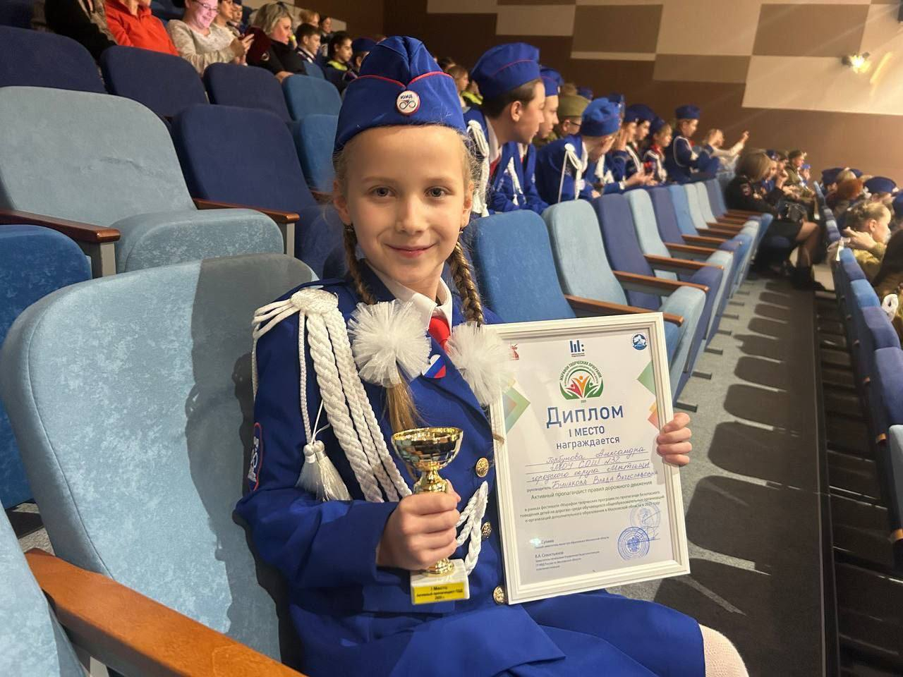 Активистка движения ЮИД из отряда ШКИДД школы № 32 достойно представила наш округ, завоевав победу в номинации «Активный пропагандист ПДД».