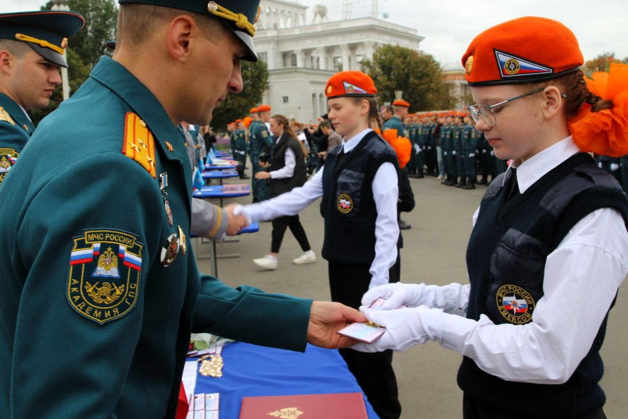 На ВДНХ состоялось мероприятие, посвященное принятию присяги сотрудника федеральной противопожарной службы и ритуалу торжественной клятвы студентов и кадетов. В нем приняли участие 200 курсантов и 111 студентов академии, а также 17 кадетов школы № 12 городского округа Мытищи.
