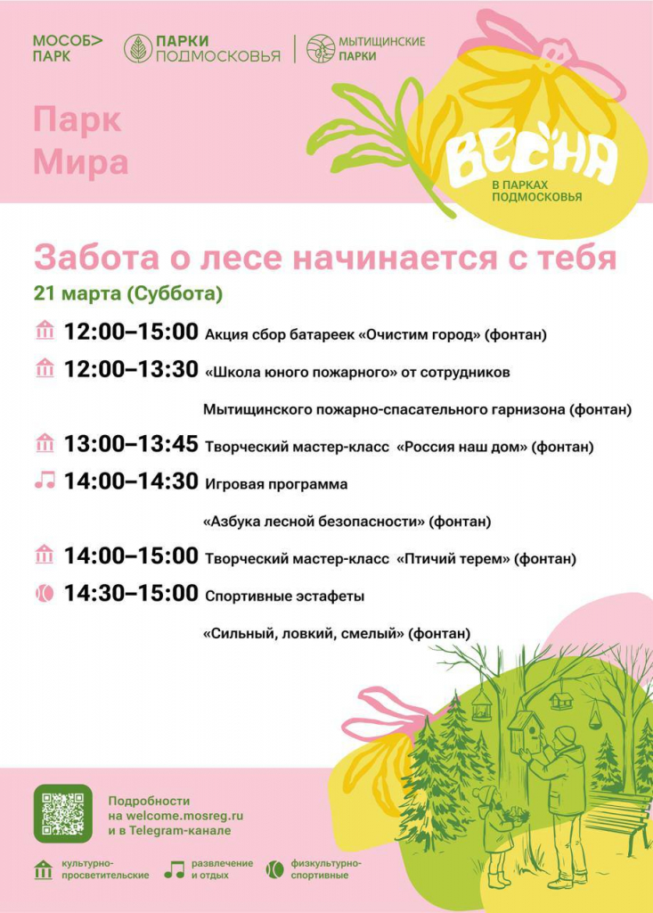 Мероприятие посвящено Международному Дню Лесов и призвано привлечь внимание к значимости лесных массивов для нашей планеты. Присоединяйся, узнай больше и стань частью движения по защите наших зелёных богатств!