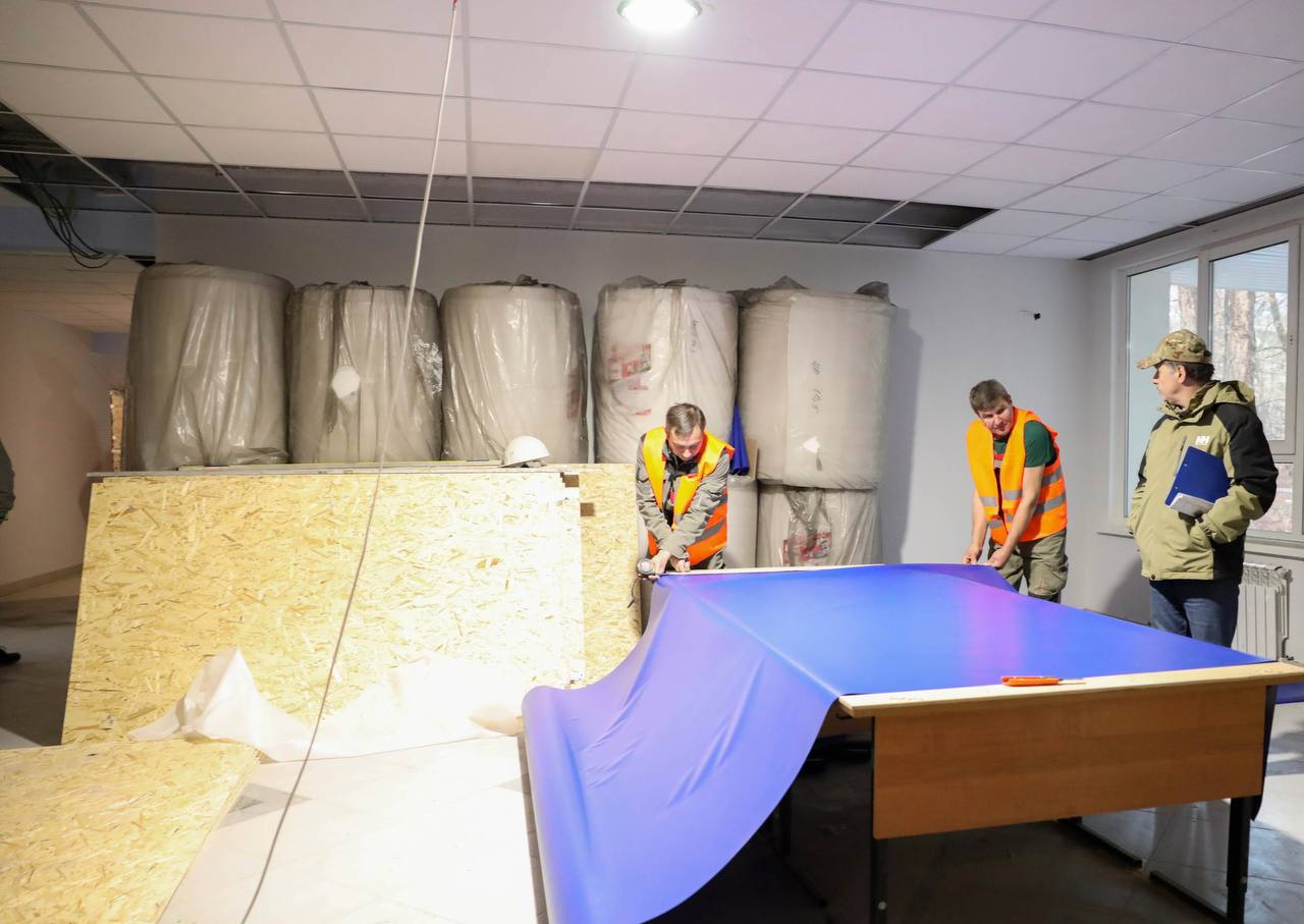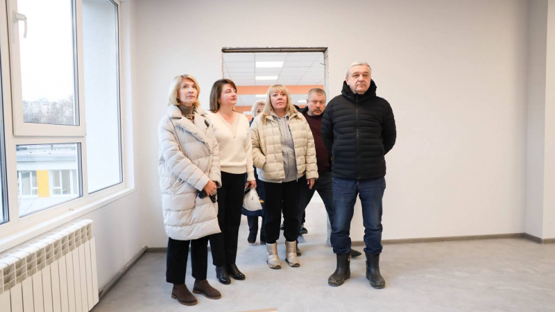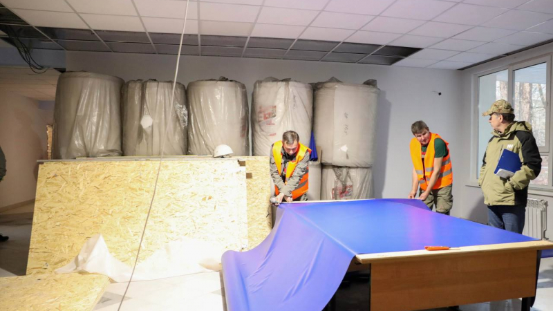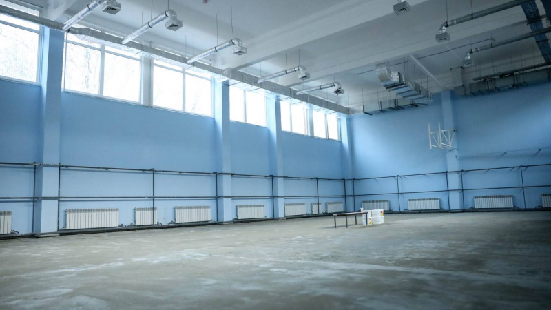 В настоящее время на объекте подрядчик устанавливает перильные ограждения на лестницах и завершает чистовую отделку, в том числе в актовом и спортивных залах. Начата сборка мебели.