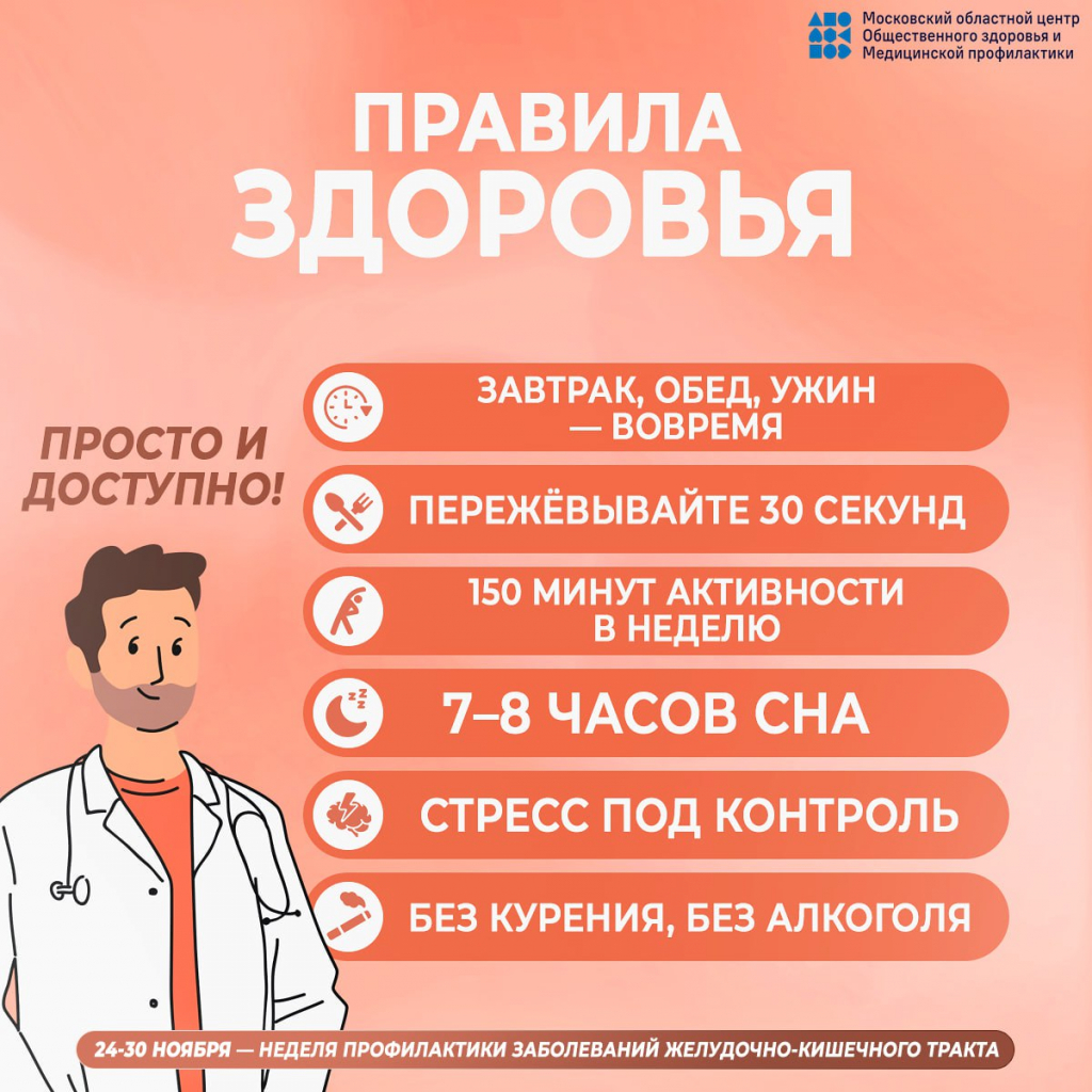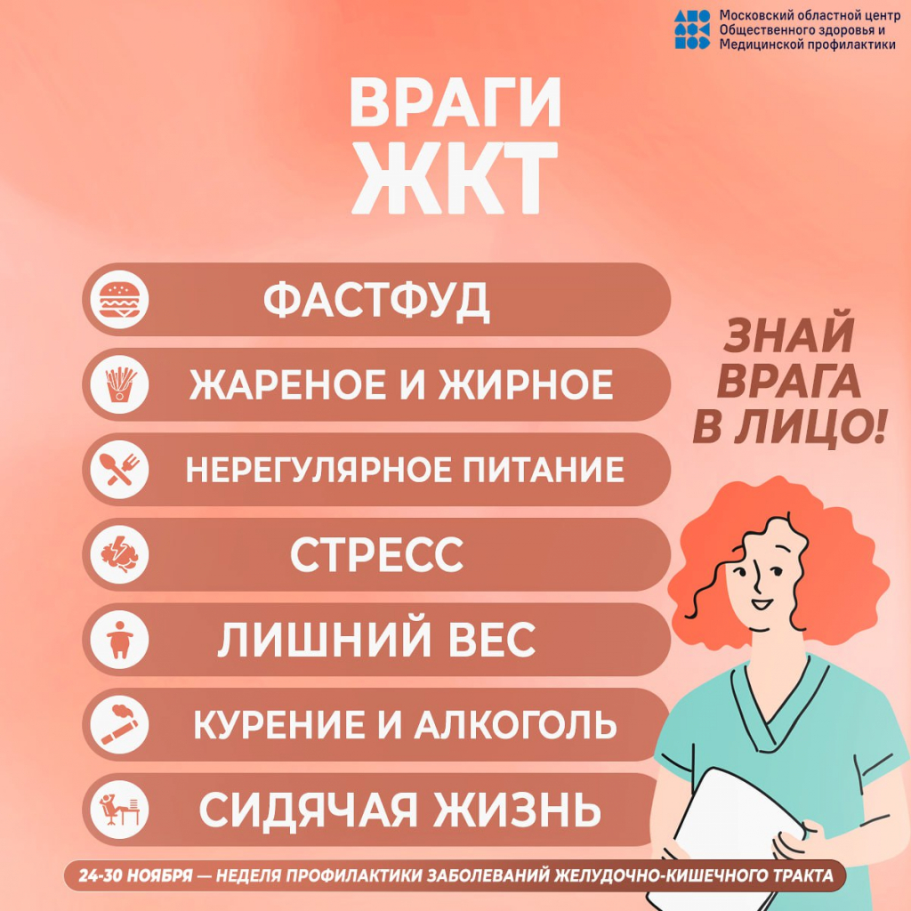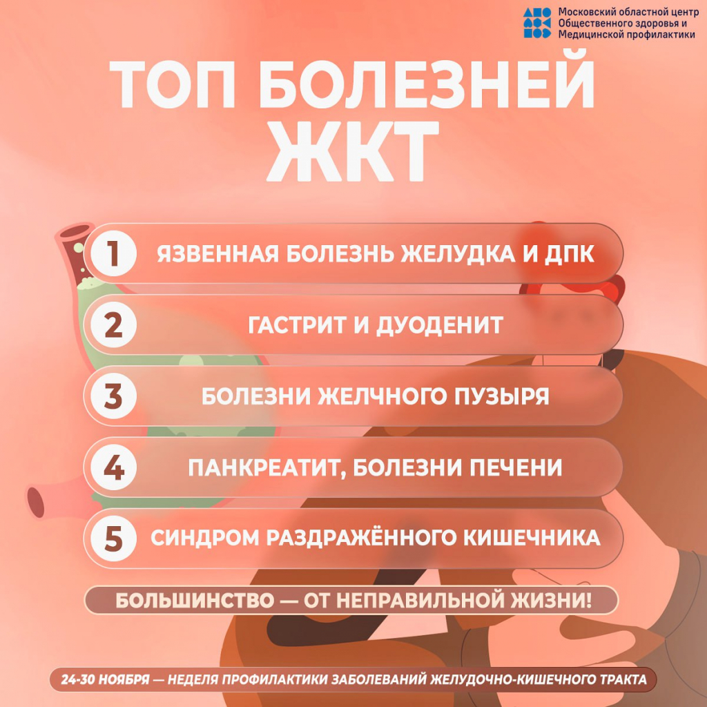 С 24 по 30 ноября 2025 года Минздрав России проводит Неделю профилактики заболеваний желудочно-кишечного тракта (ЖКТ).
