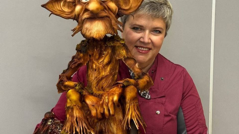 Новый шедевр от талантливой мастерицы из нашего округа Елены Кальченко – сказочный персонаж Тихон – покорил жюри чемпионата кондитерского мастерства, который проходил в рамках XXXI Международной специализированной оптовой выставки-ярмарки «Продэкспо – 2025» на базе Минского международного выставочного центра.